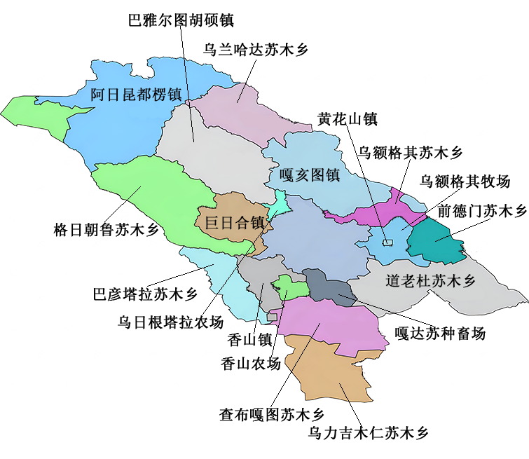 巴彦淖尔市乌拉特后旗位于内蒙古自治区西北部,北纬40°41′30″~42°21′40″,东经105°8′20″~107°38′20″。东与乌拉特中旗交界,西与阿拉善左旗毗邻,南与杭锦后旗、磴口县相连,北与蒙古国接壤,土地总面积2.5万平方千米,边境线长195.25千米,是内蒙古自治区18个少数民族边境旗县之一。旗境内阴山山脉横亘东西,南部是河套平原,北部是丘陵和丘陵高原,形成“南粮、北牧、中矿山”的自然格局。全旗草原面积3644万亩,耕地面积19.1万亩、基本农田14.4万亩。内蒙古自治区矿产资源丰富的旗(县)之一。已探明的矿产资源有8大类46个品种118处矿点。旗辖3个镇、3个苏木,52个嘎查村、19个居民委员会。2023年,地区生产总值1130589.0万元,按可比价计算,同比增长3.5%。其中,第一产业73109.0万元,同比增长13.2%;第二产业870155.0万元,同比增长2.3%;第三产业187325.0万元,同比增长4%。